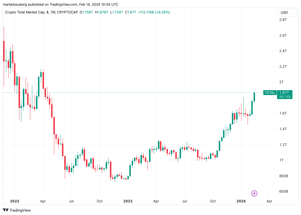 Undoubtedly, the world of cryptocurrency and the technology that powers it combines into an engaging narrative. As we observe Bitcoin inching towards a new milestone and the broader crypto market on the verge of reaching a $2 trillion valuation, the anticipation continues to build, further emphasizing the indelible mark this technology continues to make on our global economy.