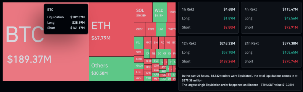 More than $270 million in short positions were liquidated in the last 24 hours. Source: CoinGlass