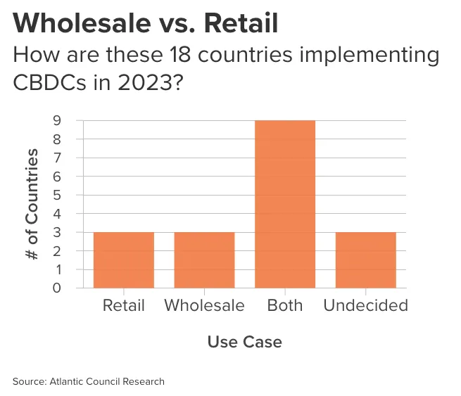 Breakdown of Wholesale vs Retail CBDC Efforts | Source: Atlantic Council